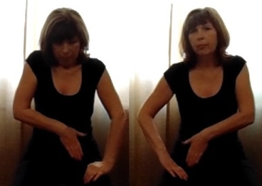 Правой рукой делают массирующее движение от солнечного сплетения полукругом к низу по левой стороне живота и обратным движением к солнечному сплетению. Массировать необходимо с незначительным усилием. Таких движений вверх-вниз должно быть 30. Затем, аналогично разминаем левой рукой правую сторону живота. Правая рука при этом фиксируется на верхней части бедра.