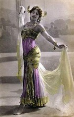 Мата ХариВ середине XIX века  восточные танцовщицы начали показывать свое искусство в Европе, а затем в Америке. Особый интерес к восточным танцам возник после скандальных выступлений Мата Хари. Эта исполнительница восточных танцев (настоящее её имя Маргарета Гертруда Зелле), позиционировала  себя экзотической принцессой, которая исполняет настоящие священные танцы Востока. Яркая внешность танцовщицы, красивые танцы, полные необычных движений, ореол таинственности,  а также скандальная репутация притягивали на её выступления многих высокопоставленных людей.  Именно благодаря её выступлениями восточные танцы стали ассоциироваться с Индией.